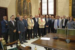 En el acto de presentación del cartel estuvieron presentes, además de los miembros del Consejo de Hermandades, la delegada de Fiestas mayores, Rosamar Prieto, y el pregonero de loa Semana Santa 2009, el abogado Enrique Henares.