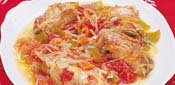 En un recipiente con un buen chorro de aceite se fríe la cebolla cortada muy picadita, cuando esté transparente se le añade la zanahoria partida a cuadraditos, le damos unas vueltas y le agregamos el pollo troceado y sal al gusto. Mareamos todo y le ponemos las dos cucharadas de azúcar, esperamos dándole vueltas hasta que esté doradito y caramelizado, le añadimos el vino oloroso ó el coñas, lo dejamos cocer unos minutos para que se evapore el alcohol y le agregamos un vaso de agua o mas cantidad si lo necesita. Dejamos a fuego lento hasta que esté tierno. [Volver al índice]