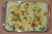 Se lava bien la brocolis y se trocea en pequeños racimitos. En una cacerola se cubren de agua, se le añade Sal al gusto y se deja hervir durante diez o quince minutos aproximadamente, hasta que el tallito de la brocolis esté tierno. Se escurren y se extienden en una fuente, se cubre con la salsa bechamel y expolvoreamos queso parmesano, introducimos en el horno hasta que el queso esté un poco dorado. Servir caliente. [Volver al índice]