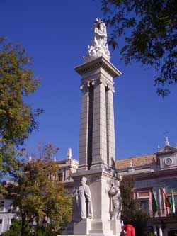 El desplazamiento hasta el Templete de la Cruz del Campo tuvo lugar en 1540, el año siguiente del fallecimiento de Don Fadrique, construido el año 1482 en el lugar donde en el siglo XIV sólo hubo una humilde cruz de madera junto a la capilla de la Hermandad de Luz de Nuestra Señora de los Ángeles que atendía a los negros desvalidos, según publica en la Revista “Archivo Hispalense” 1952, Don Antonio Martín de la Torre.