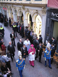 30 de mayo de 2013. Día de Sevilla y fiesta de San Fernando, Patrón de Sevilla, y Corpus Christi, en el Jueves intocable para esta fiesta en esta ciudad universal. Mientras bailan los seises en la Catedral se iniciará la solemne procesión del Corpus Christi 2012, que recorrerá las principales calles del centro de la ciudad. Este año se ha dedicado de forma especial este acto a la Virgen de la Hiniesta, patrona del Municipio, con motivo de su efemérides. La imagen gloriosa y coronada, como todos los años, presidirá el altar de la plaza de San Francisco y las portadas en esta zona reproducen la fachada de la Iglesia Parroquial de San Julián