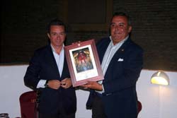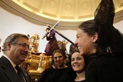 Las Cofradías del Lunes Santo, con sus hermanos mayores al frente en este acto, hicieron entrega a Manuel Yruela de una preciosa obra de arte realizada por Fernando Marmolejo, que reproduce la imagen fernandina de la Patrona de Sevilla.