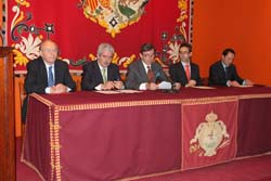 En el acto de presentación participaron el empresario sevillano José Luis Muñoz Borrero, promotor de la idea junto al gaditano Cristóbal de Piña, el historiador e investigador Adolfo Borrero, el matador de toros Eduardo Dávila Miura y el presidente de la Confederación de Empresarios de Sevilla, Miguel Rus.