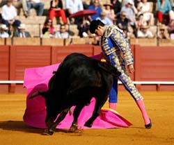 Extremadura sobre el albero dorado de la Maestranza en este festejo del domingo 26 de mayo. Todos los novilleros eran de la cercana región. Tulio Salguero de Badajoz; Rafael Cerro de Navalmoral de la Mata y Tomás Aragón de Llerena. La fiesta nacional repartida por todas nuestras autonomías y aquella que no lo esté y que no viva con pasión este espectáculo es que se está perdiendo una histórica representación de nuestra cultura más universal. Los toros están en crisis porque el país sufre los problemas de una economía en horas bajas. Pero en las Ventas, por San Isidro, los malos mengues no se notan porque la plaza se llena y se coloca casi todos los días el cartel de no hay billetes. Pero en cuanto los números salgan ya estarán mucho más personal batiendo palmas en los tendidos.