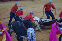 • El veterano torero trianero Curro Puya y los alumnos de las escuelas de tauromaquia también participan en las clases prácticas de toreo