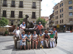 Podíamos escribir un libro con todas las anécdotas y convivencias. Cada viajero y viajera, cada peregrino y peregrina, aportó su granito de arena para pasarlo lo mejor posible. En el grupo había mayoría de sevillistas, pero los béticos, como Carlos Morán, eran más ruidosos. Palanganas y verderones se unieron ante el monumento a "la loba" - como la del paso de la Presentación--, situada junto al acueducto de Segovia, porque al final todos son "pilateros". Las tunas en la Plaza Mayor de Salamanca le dedicó la canción "Se han clavado dos cruces en el barrio de Santa Cruz..." a la hermana mayor de Valvanera.