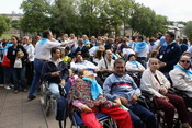 Pero llegó el camino de vuelta. Nueva parada y fonda en Zaragoza para celebrar un acto de acción de gracias en la Basílica del Pilar. El epílogo de esta nueva concentración de los peregrinos tuvo ambiente de fiesta en la mismísima plaza del Pilar. Allí, con la actuación del Coro de la Fundación , bailaron sevillanas enfermos y costaleros, disminuidos físicos en sus sillas de ruedas y voluntarios. Fiesta grande para poner broche de oro a unas intensas jornadas de amor, entrega, vivencias, recogimiento, esperanza y entrañables gestos de solidaridad.