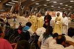 La lluvia provocó un cambio de sitio para el acto de la bendición de los enfermos con el Santísimo, que se realizó en el interior de la capilla subterránea de Lourdes, con presencia del cardenal Amigo, siempre acompañado del Hermano Pablo.